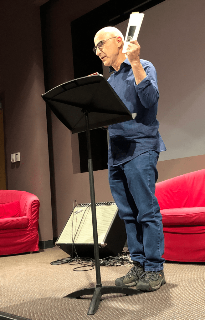 Lynn, Z, BP, John, Mark, Denise, LoriLori and DeniseLori Ambacher reading poetry and memoirDenise Frame-Harlan reading an essayLynn Marcotte reading an essayJohn Mirisola reading from a novel-in-progressBryan Parys performing Now/ArrivingMark Wacome Stevick reading an interactive poemJim Zingarelli reading from his book of poems Taken to Taskwith Andrew Logemann