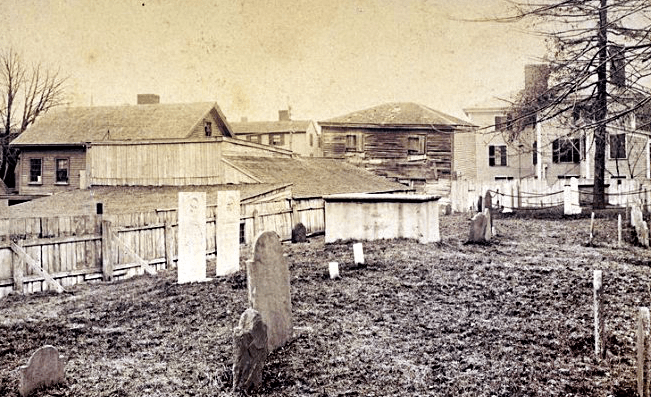 A throng of bearded men, in sad-colored garments, and gray, steeple-crowned hats, intermixed with women, some wearing hoods and others bareheaded, was assembled in front of a wooden edifice, the door of which was heavily timbered with oak, and studded with iron spikes. (1850)