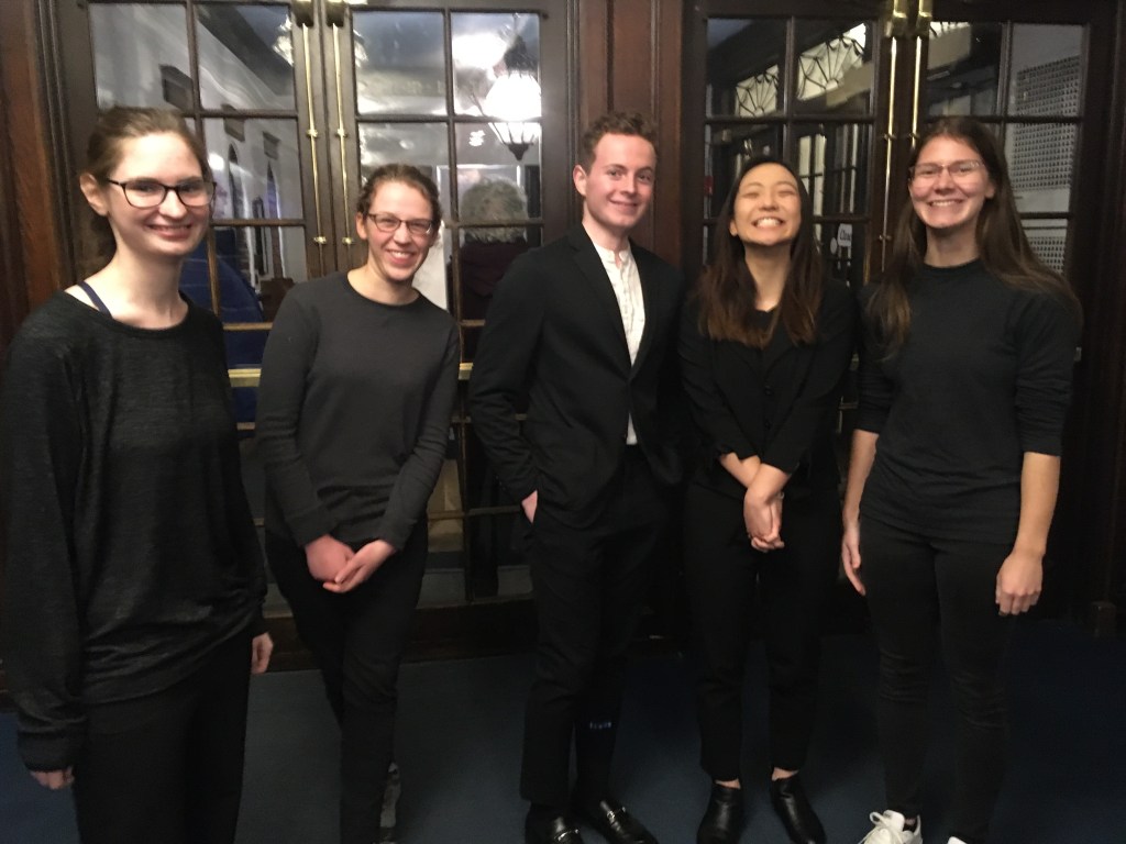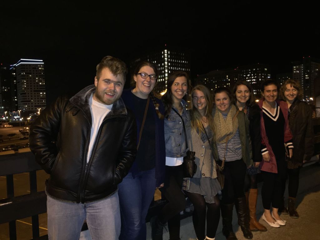 Playwrights ushering for Lynn Nottage’s play “Sweat” at the Huntington Theatre, Boston.Podcast-makers & storytellers put their names in the hat at The Moth, Boston.Our publishing coterie listens to a panel of lit journal editors at Porter Square Books, Cambridge.With Chris Anderson, at the Lit House, Gloucester.Debriefing after our visit with Marilynne Robinson at a Cambridge eatery.Literary gumshoes.Prof. Stevick won a StorySlam and was runner-up at a GrandSlam at the Somerville Theatre.